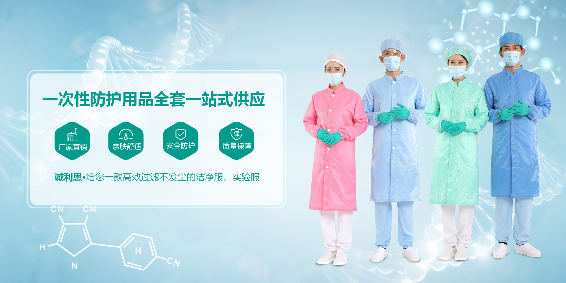 公司主要產品有:耐高溫滅菌潔凈服、耐高溫滅菌潔凈內衣、實驗服、白大褂、工作內衣、工作制服、潔凈鞋、潔凈鞋套、一次性個人防護(隔離衣、口罩、發帽、手套、鞋套)、實驗動物防護馬甲系列等潔凈安全防護系列產品。